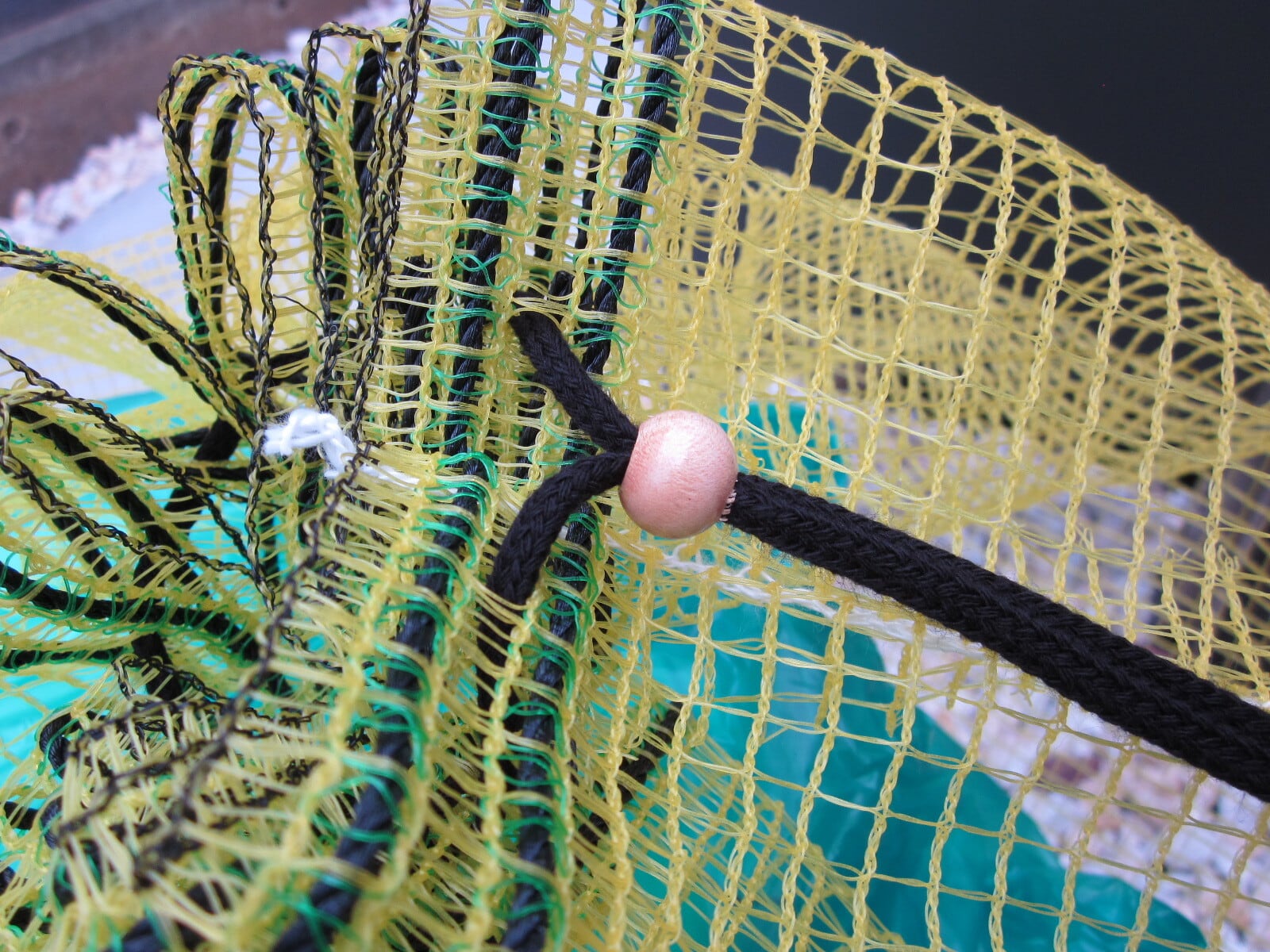 上側のヒモを絞り、ビーズストッパーでネットの口を閉じます。あとはゴミ袋にかぶせて設置完了!